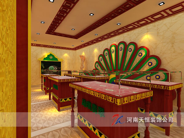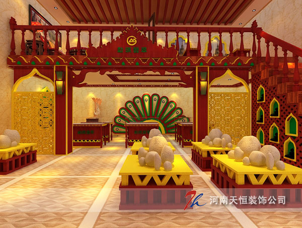 工程地址:天下收藏 主案設計:朱俊峰 設計風格:泰式風格 設計說明:生意之道在于天地人和,此案采用了小乘佛教的元素為天,吉象和綠孔雀為地,加上人性舒適化的購物空間為人,綜合以上為和。物以致用,空間靈動。翠綠的翠色,加上奢華的金色,體現(xiàn)貴乎稀有,萬里挑一的買賣宗旨。讓生意不再生硬,從而帶來的是更客情的感覺,品茶,鑒賞,收藏,一切從勐琪翡翠開始。